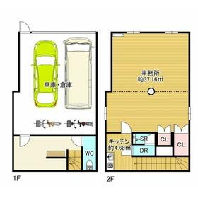 1Fは広々としたガレージと倉庫(普通車2台駐車可!!)2Fは落ち着きのある事務所として利用可能 1階EV車200V 2箇所電源完備!!