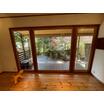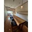 庭を眺める大きな窓と、一枚板のカウンターがある家。暮らしも、商いも、ここから始まる。