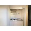 国道50号線・結城バイパス沿いの見通しの良い建物・1階路面店の角住戸です。店舗入口側はガラス張り面積が広く開放感があり、水回りが集約された使い勝手の良い間取りです。