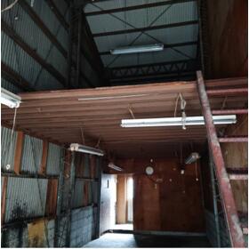 中二階付き倉庫。入口部分を改装すれば高さのある車の入庫可能。使用用途お気軽にご相談下さいませ。