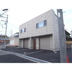 外院の新築ガレージハウス。駐車場2台無料。リモコン電動シャッター、独立洗面台、お風呂、インターフォン等設備充実。業種等何でもお問い合わせください。