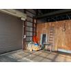 シャッター1箇所・勝手口1箇所で天井高もあり、駐車も6台あります。(シャッター:幅約3.4m、高さ約3.2m)